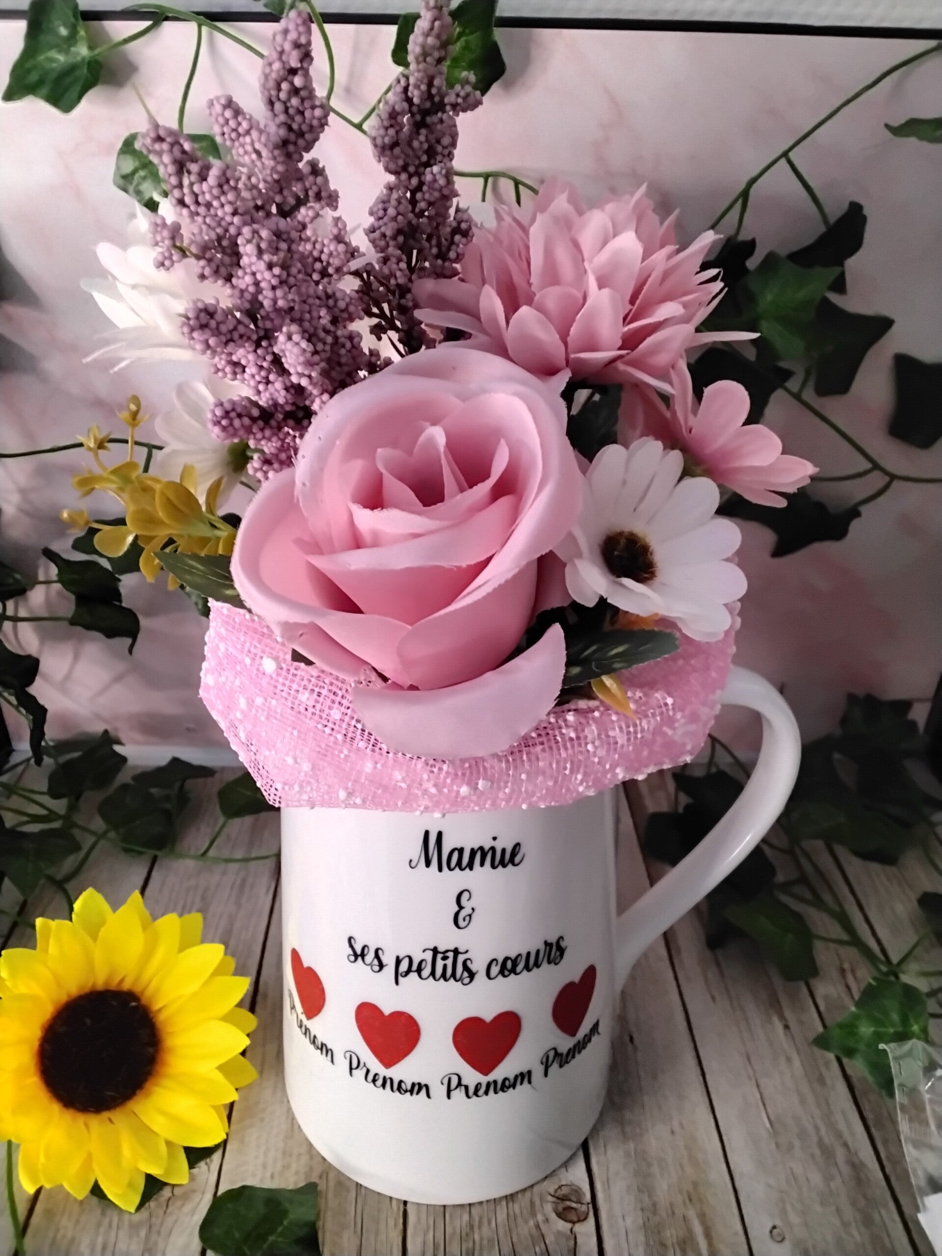 Pichet vase blanc à personnalisé avec les prénoms que vous souhaitez